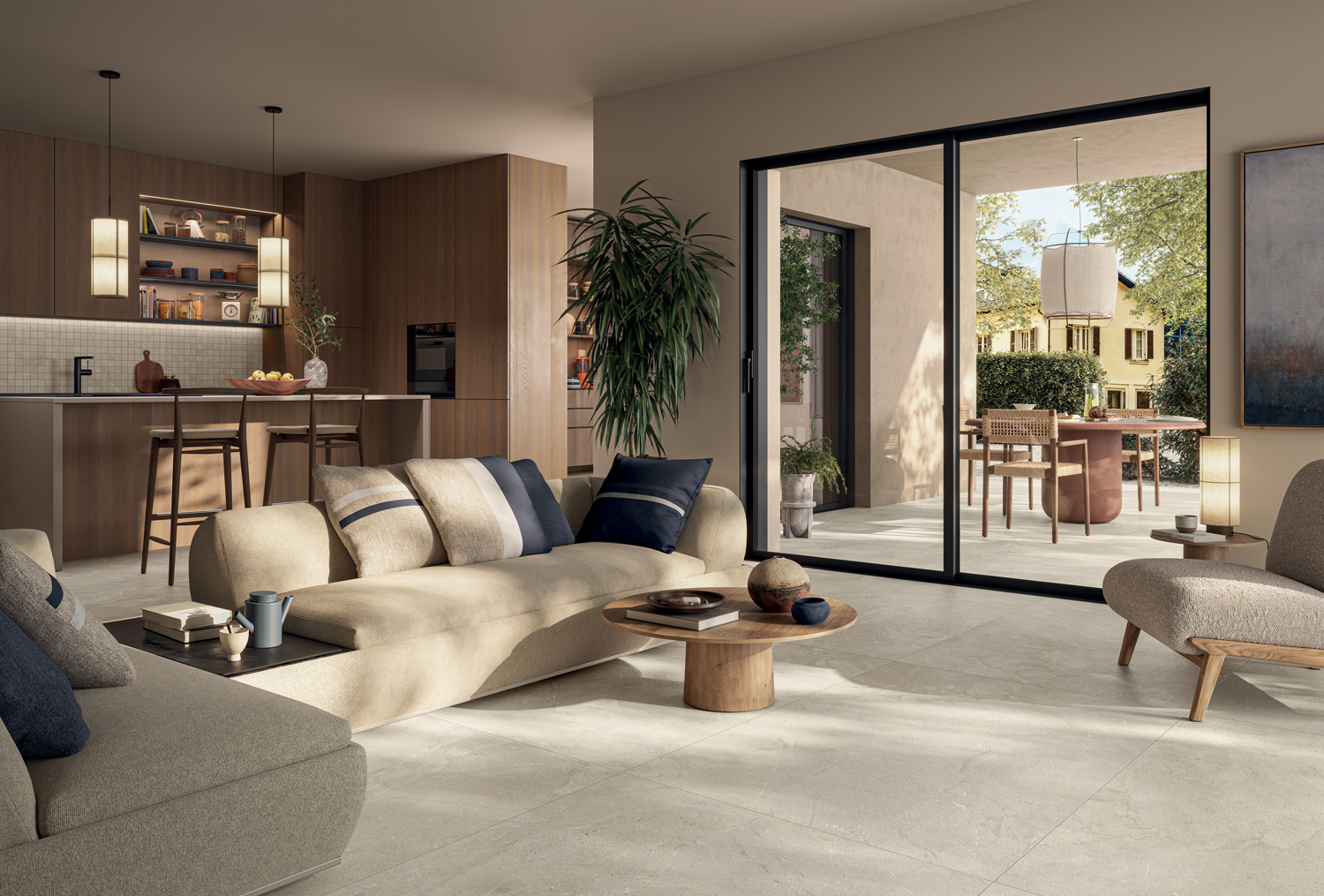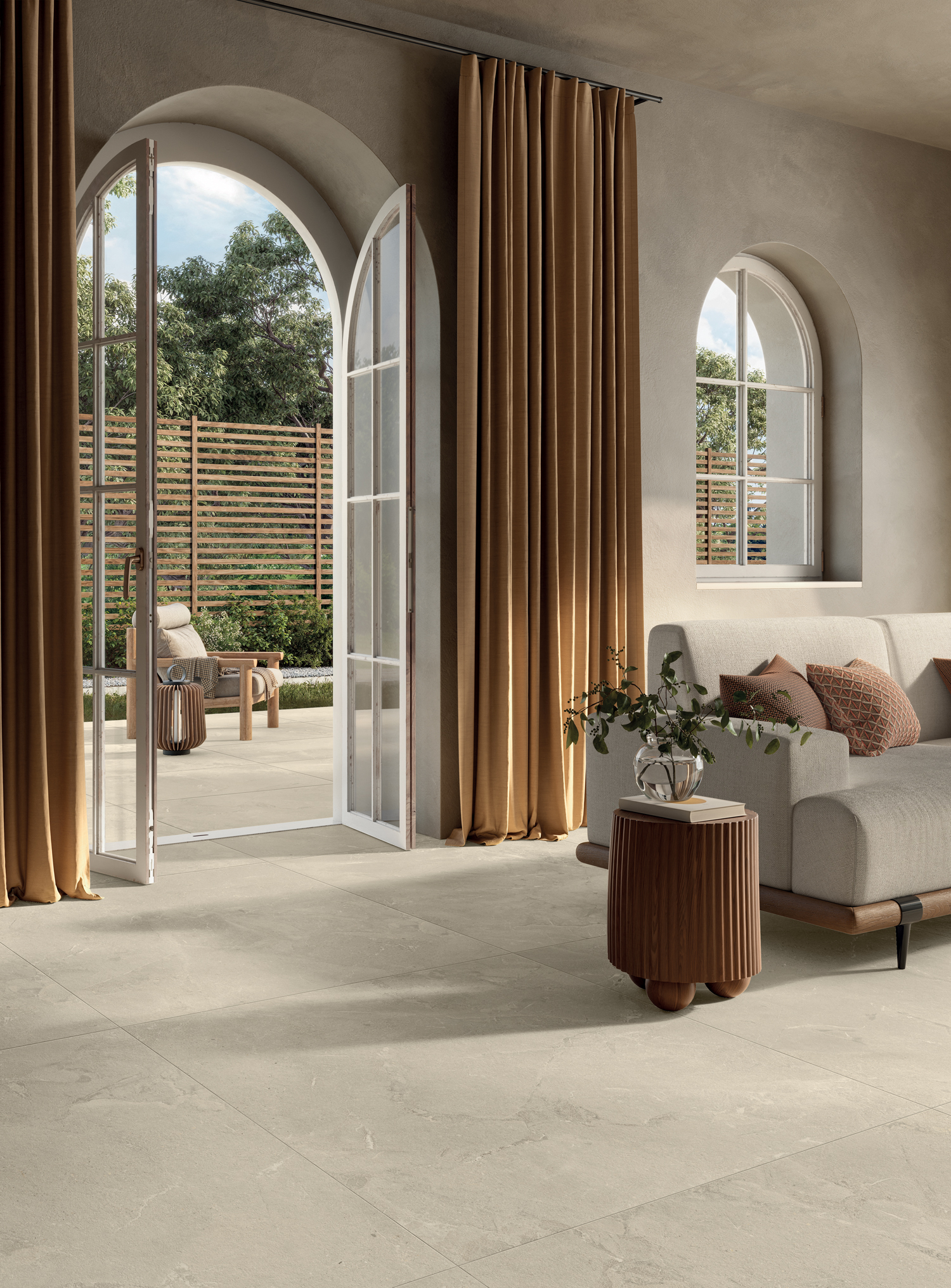 Die Indoor/Outdoor-Vielseitigkeit von Revel bietet die Freiheit, authentische Räume zu gestalten, in denen Innen und Außen in einen kontinuierlichen Dialog mit der Umgebung treten.