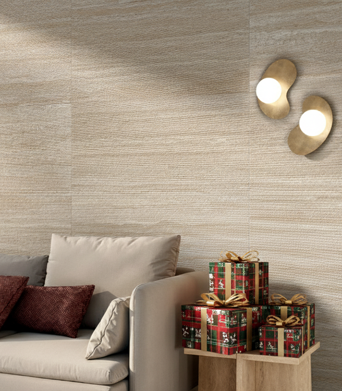 Gedacht für gepflegte, aber maßvolle Atmosphären, durchläuft die Kollektion Jahreszeiten und Trends in Harmonie. Während der Festtage verwandelt sie Räume in leuchtende Szenerien: Wände, die den Weihnachtsbaum einrahmen, Nischen für saisonale Dekorationen, Bäder und Wellnessbereiche als persönliche Rückzugsorte.