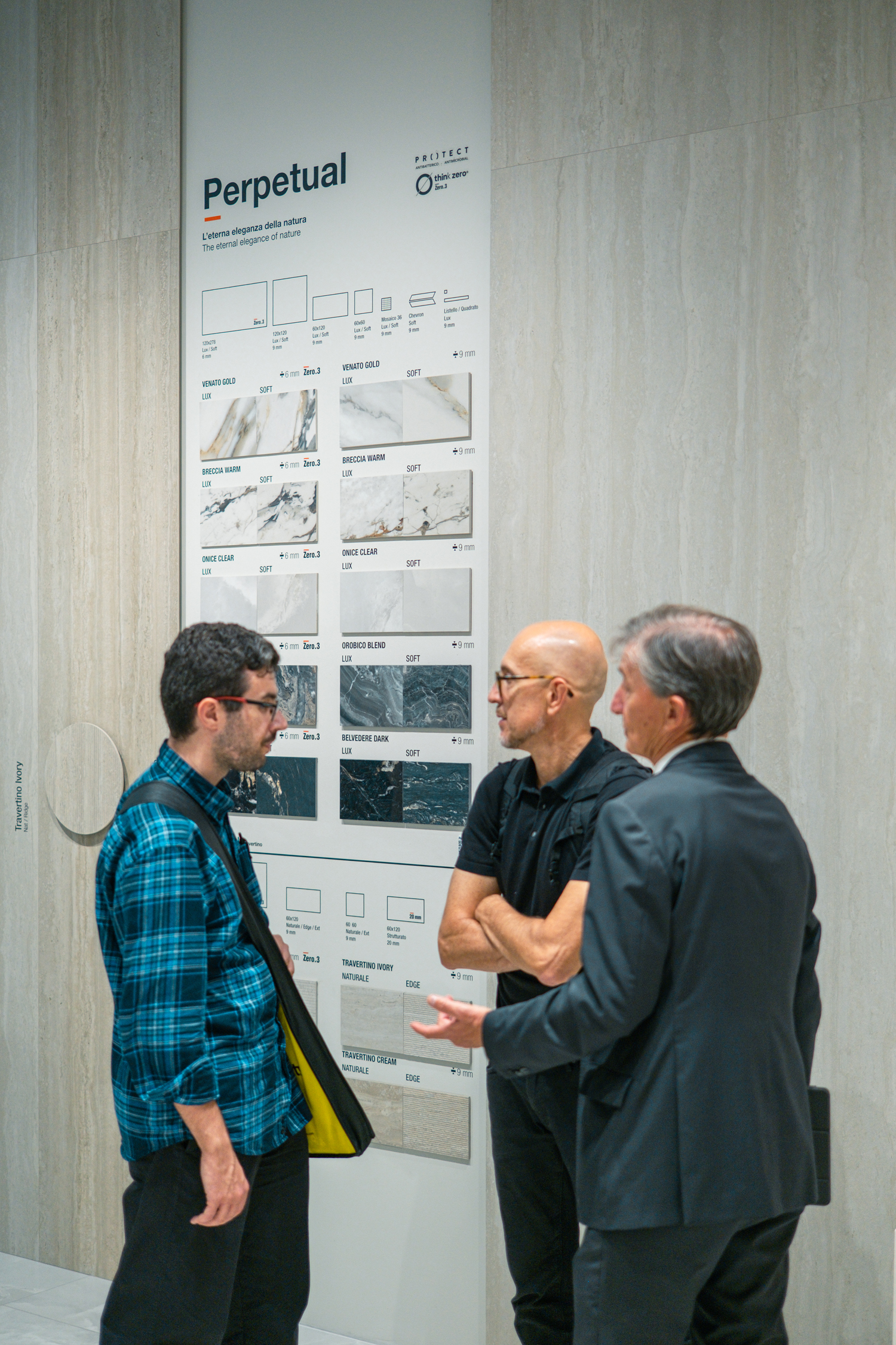 Zuletzt, aber nicht weniger wichtig, Perpetual / Travertino – die Weiterentwicklung der 2023 eingeführten Marmoroptik-Kollektion – stellt zwei neue Oberflächen vor, inspiriert von der Noblesse des vein-cut Travertins, mit tiefen und raffinierten Texturen, in einer zeitgemäßen und harmonischen Bildsprache. Zudem wird die Kollektion mit 20 mm Stärke ergänzt, ideal für widerstandsfähige und langlebige Außenböden, die stilistische Kontinuität zwischen Innen- und Außenbereichen schaffen und die zeitlose Eleganz der Marmoroptik unterstreichen.